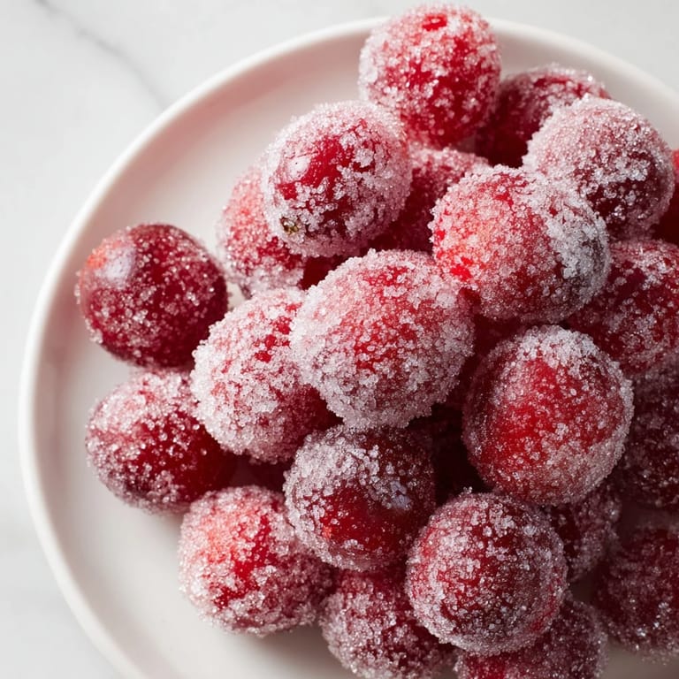 Save A quick and vibrant treat featuring tart cranberries coated in a sparkling crunchy sugar shell—perfect for snacking, garnishing, or gifting.