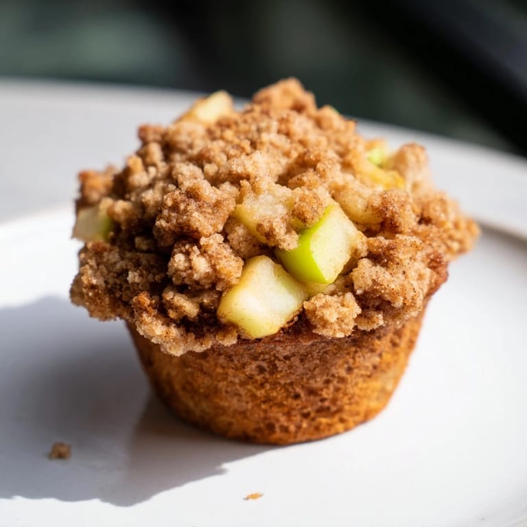 The crumb topping adds a crunchy, buttery contrast that complements the soft, spiced muffin base.
