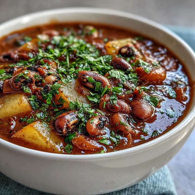 Save One autumn afternoon, my neighbor appeared at my back door with a basket of fresh vegetables from her garden, and I found myself standing in my kitchen wondering what on earth to do with them all. Black-eyed peas were already simmering in my pantry from a farmers market haul, and something about the way the golden light hit those tomatoes made me reach for them instead of scrolling through recipes. That single impulse turned into this stew, the kind that fills your house with warmth before you even taste it.