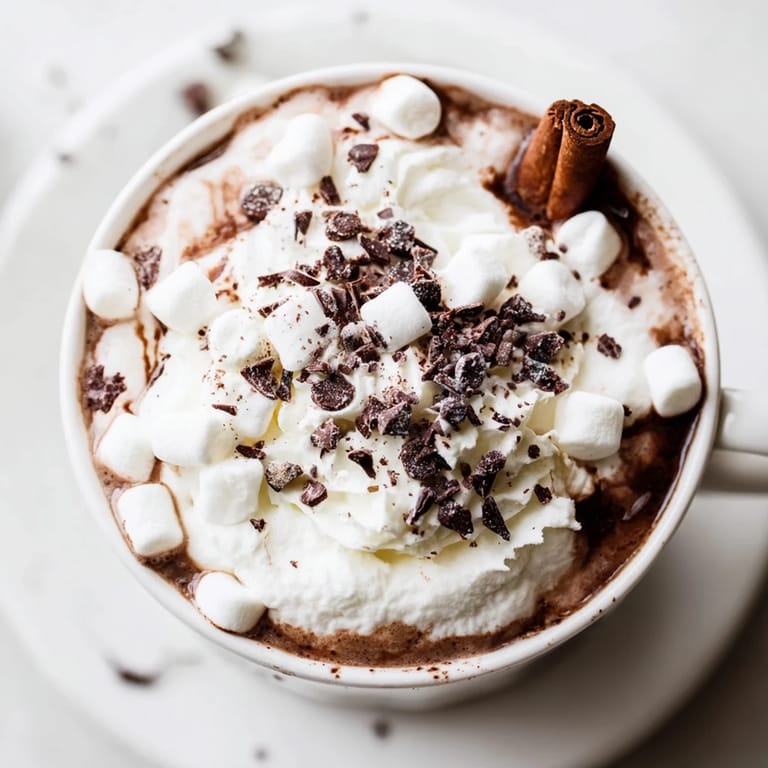 - In a medium saucepan over medium heat, combine milk, heavy cream, chocolate chips, cocoa powder, sugar, vanilla, and salt. Whisk until chocolate is melted and the mixture is smooth and steaming (do not boil). Remove from heat and keep warm.