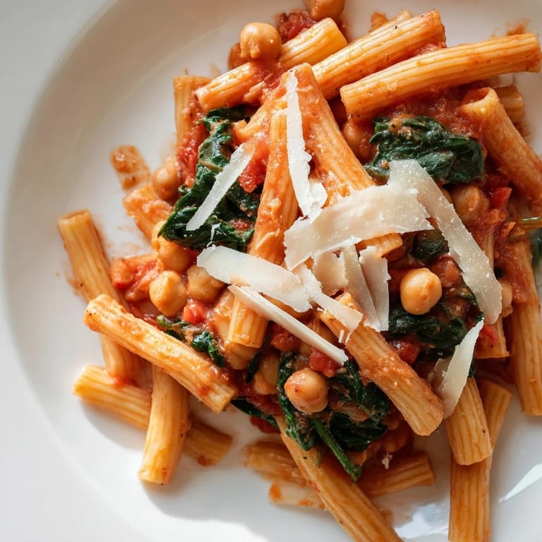 Save My roommate wandered into the kitchen one Thursday night, exhausted from work, and asked what smelled so good. I was stirring a skillet of chickpeas bubbling in cream and tomatoes, the garlic filling every corner of our tiny apartment. She grabbed a fork, tasted it straight from the pan, and declared it better than anything we'd ordered all month. That's when I knew this pasta wasn't just dinner, it was the kind of meal that makes you forget you're tired.