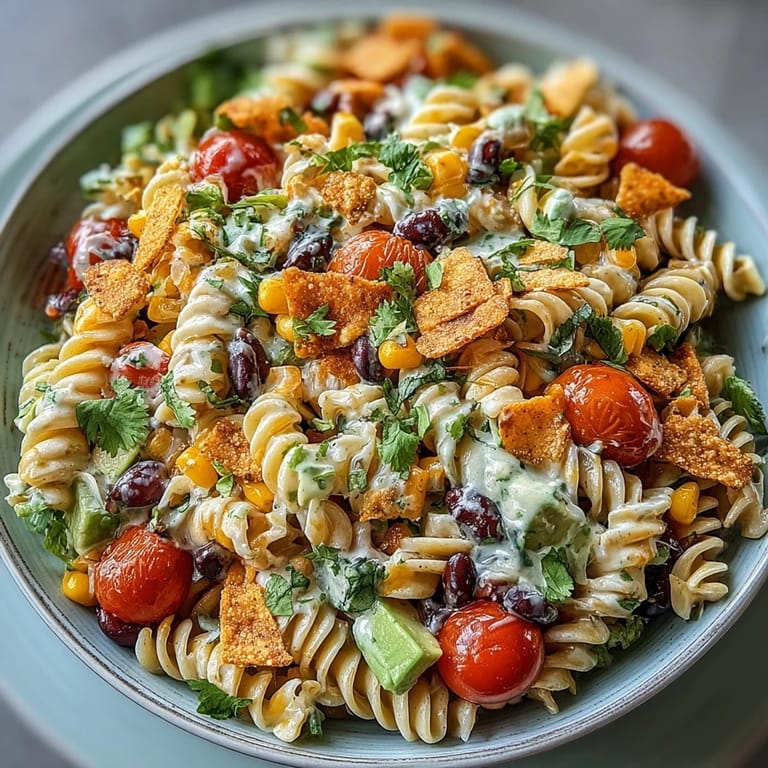 Save My neighbor Sarah showed up at a summer barbecue with this taco pasta salad last July, and I watched people go back for thirds before the main course was even ready. There's something about the combination of creamy dressing, bright lime, and those unexpected tortilla chips that just works. I asked for her recipe that evening, made it the next week for a potluck, and it's been my go-to ever since. The best part? It comes together in thirty minutes, tastes even better the next day, and somehow makes you feel like you're serving something special when really you're just tossing pasta with things you probably already have on hand.