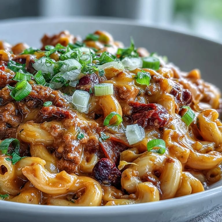 Save The smell of browned beef and cumin hit me the moment I walked in from work, and I knew my roommate was testing another skillet experiment. She called it chili mac, and I called it genius: everything I loved about both dishes, none of the extra pots. I stood there with my coat still on, watching her stir pasta right into the bubbling tomato base, and I remember thinking this might be the smartest thing anyone had ever done with ground beef. By the time she folded in the cheddar, I was already reaching for a bowl.
